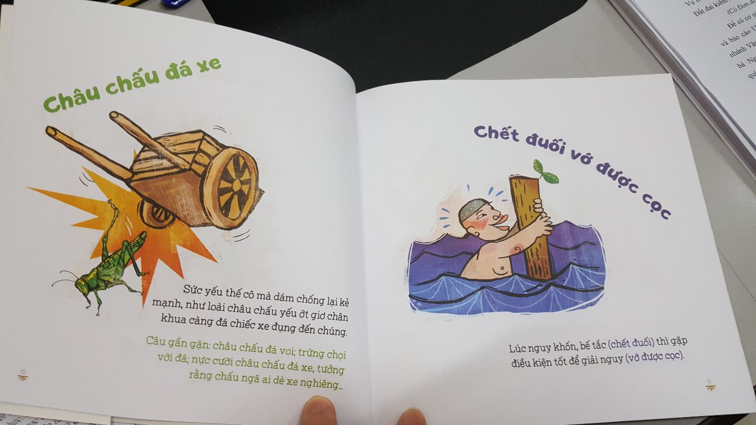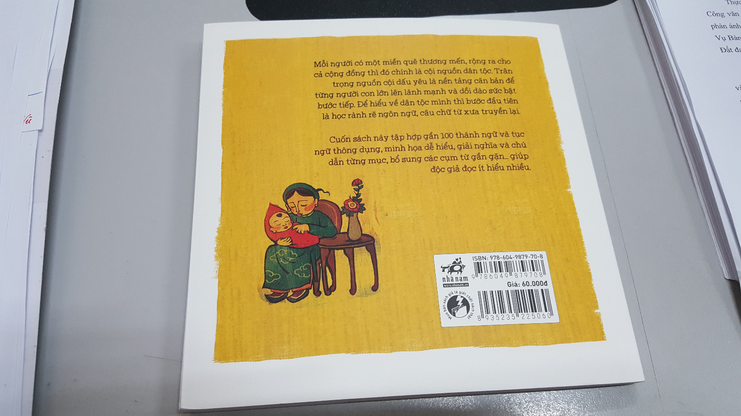 Mỗi người có một miền quê thương mến, rộng ra cho cả cộng đồng thì đó chính là cội nguồn dân tộc. Trân trọng nguồn cội dấu yêu là nền tảng căn bản để từng người con lớn lên lành mạnh. Để hiểu về dân tộc mình thì bước đầu tiên là học rành rẽ ngôn ngữ, câu chữ từ xưa truyền lại. Ông cha ta để lại rất nhiều cụm từ, câu nói, bài thơ ngắn gọn, giản dị, giàu nhịp điệu và hình ả Thuộc những cụm từ ấy, ta giàu thêm vốn từ, ta biết thêm kinh nghiệm, và tâm hồn ta cũng “giàu có” rất nhiều. Đó là những câu thành ngữ, tục ngữ, ca dao, dân Cuốn sách này lựa ra những thành ngữ và tục ngữ thường gặp và dễ hiểu với bạn đọc trên 3 tuổi, thêm chú dẫn những khái niệm cổ và khó, thêm các cụm từ gần gặ giúp các bạn đọc ít mà hiểu nhiều.