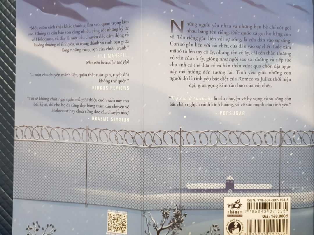 Thợ xăm ở Auschwitz là một tài liệu khác thường, được công bố hơn bảy mươi năm sau những sự kiện nó thuật lại, và nó nhắc nhở chúng ta rằng có rất nhiều câu chuyện sẽ mãi mãi không bao giờ được kể. Nó cũng nhắc chúng ta nhớ rằng trong số nạn nhân lớn đến không tưởng tượng nổi của Holocaust, mỗi người đều là một cá nhân với một câu chuyện độc nhất vô nhị… Và câu chuyện này là một câu chuyện khác thường, thậm chí là so với những câu chuyện về Holocaust nói chung – bởi nó cảm động, thẳng thắn và nâng cánh cho tâm hồn, và dĩ nhiên nó là một cánh cửa sổ để nhìn vào sự kiện khủng khiếp bậc nhất trong lịch sử loài người. Heather Morris kể câu chuyện của Lale bằng lòng tự trọng và sự kiềm chế, không bao giờ để ý kiến riêng của mình xâm phạm vào, hay để cho câu chuyện tình yêu lấn át cái bối cảnh lớn hơn của sự dịch chuyển, sự tổn thương tâm lý và sự sống sót. Đây là câu chuyện về những thái cực trong hành vi của con người tồn tại song song với nhau: sự ác độc có tính toán bên cạnh những hành động vị tha và thôi thúc của tình yêu. Tôi khó mà hình dung được có ai đó không bị lôi cuốn, bị thách thức và cảm động khi đọc cuốn sách này. Tôi sẽ không chút ngại ngần mà giới thiệu cuốn sách này cho bất kỳ ai, dù cho họ đã từng đọc hàng trăm câu chuyện về Holocaust hay chưa từng đọc câu chuyện nào. – Graeme Simsion, tác giả của The Rosie Project, The Rosie Effect, The Best of Adam Sharp và Two Steps Forward LỜI GIỚI THIỆU CỦA TÁC GIẢ Đây là cuốn tiểu thuyết dựa vào lời kể trực tiếp của một người sống sót khỏi Auschwitz; nó không phải một hồ sơ có căn cứ về các sự kiện của Holocaust. Có nhiều tài liệu ghi lại sự thật về giai đoạn lịch sử khủng khiếp này, chi tiết hơn rất nhiều so với những gì được giải thích trong một cuốn tiểu thuyết; và tôi khuyến khích độc giả quan tâm tìm hiểu thêm. Trong thời gian ở Auschwitz-Birkenau, Lale gặp rất nhiều lính gác và tù nhân chứ không chỉ như được miêu tả trong những trang sách này; thỉnh thoảng tôi sáng tạo ra một số nhân vật đại diện cho không chỉ một cá nhân và đã giản lược hóa một số sự kiện nào đó. Tuy một số cuộc gặp gỡ và lời thoại trong tiểu thuyết này là do tôi tưởng tượng ra, song hầu hết các sự kiện được kể lại giống như trong thực tế, và thông tin được đưa vào sách đều có nguồn và đã được nghiên cứu. Heather Morris