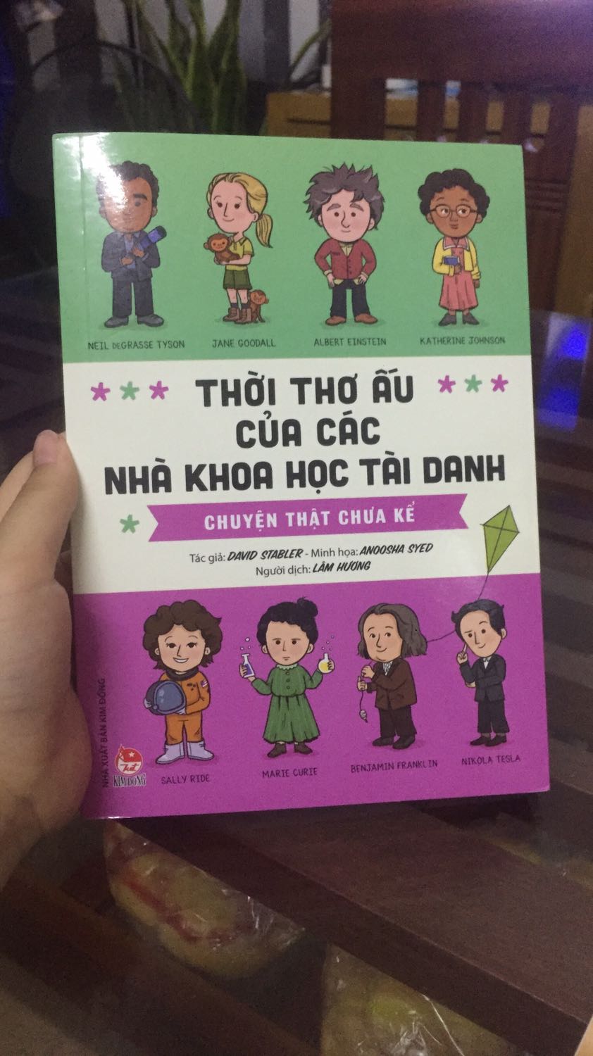 Mọi nhà khoa học tài danh đều bắt đầu hành trình của mình từ khi còn bé… Tiếp nối thành công của những cuốn đầu tiên trong sê-ri về thời thơ ấu của những người nổi tiếng trên thế giới ở các lĩnh vực: Chính trị gia, Nghệ thuật, Thể thao… Nhà xuất bản Kim Đồng giới thiệu cuốn sách thứ 5, với chủ đề Thời Thơ Ấu Của Các Nhà Khoa Học Tài Danh. Đây là cuốn sách kiến thức dành cho lứa tuổi 7+, thuật lại những câu chuyện sống động về thời thơ ấu của các nhà khoa học tài năng, nổi tiếng, có sức ảnh hưởng lớn lao cho con người và thời đại. Từ Albert Einstein đến Stephen Hawking, từ Marie Curie, Isaac Newton đến George Washington Carver, Vera Rubin, và Katherine Johnson… Bạn có thể không biết tên tất cả các nhà khoa học trong cuốn sách này, nhưng nhờ có họ, chúng ta biết về trọng lực, về nhiễm sắc thể, về vật chất tối, và về các lỗ đen trong vũ trụ. Trước khi có những phát minh mang tính đột phá, những nhà khoa học này cũng chỉ là đứa trẻ bình thường, luôn tò mò về thế giới xung quanh. Có người thì say mê ngắm bầu trời đêm, như Neil de Grasse Tyson. Cậu bé đã từng làm công việc dắt chó đi dạo để tiết kiệm tiền mua chiếc kính viễn vọng đầu tiên của mình. Và Vera Rubin, người phát hiện ra vật chất tối, đã từng thức suốt đêm để ngắm mưa sao băng từ cửa sổ phòng ngủ của mình. Một số đứa trẻ lại yêu quý các con vật và thiên nhiên, như Jane Goodall. Trước khi sống cùng với những con tinh tinh ở Tanzania, cô đã có lần làm cho mẹ mình hoảng sợ khi để những con giun dưới gối của mình. Khi còn nhỏ, George Washington Carver cũng vô cùng yêu thích thế giới tự nhiên. Cậu bé yêu quý những cái cây trong khu vườn của mình đến mức nói chuyện với chúng!