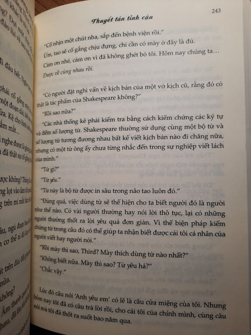 Thuyết Tán Tỉnh Cậu (Tặng Kèm Postcard) “Lăng nhăng như mày mà cũng muốn kết hôn hả?” “Thì tao hết lăng nhăng rồi nên mới muốn kết hôn, từ lúc đẻ ra đến giờ chưa kết hôn lần nào nên muốn thử. Mà đám cưới phải có cô dâu thiệt là dễ thương nè, tổ chức tiệc mời cả nghìn bàn luôn, nếu mời được Thủ tướng đến làm chủ hôn thì còn oách hơn nữa.” “Mày ảo tưởng nó vừa thôi.” “Không thích hả?” “Không.” “Thích đám cưới theo phong cách nào?” “Đơn giản, có lẽ chỉ tổ chức trong gia đình thôi?” “Ok, để tao gọi điện báo cho mẹ.” Bộ phim ăn khách Theory of Love đã làm mưa làm gió bao nhiêu trái tim người xem thì nay tiểu thuyết đã chính thức được ra mắt. Chàng trai ăn chơi cũng phải dừng lại trước người mà cậu yêu. Nhưng đó không phải chuyện dễ dàng. Yêu mà không biết mình yêu, thương mà cứ băn khoă