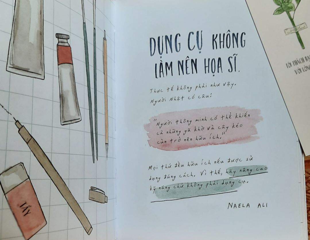 KHI BUỒN CHÁN, BẠN SẼ LÀM GÌ…? Nếu nhận được câu hỏi này, đa phần chúng ta sẽ trả lời rằng: “Tôi đi tắm.” “Tôi nghe nhạc, những bài hát có thể phần nào xoa dịu nỗi đau.” “Tôi nấu ăn, chỉ có đồ ăn mới là chân ái.” Và “Tôi buồn chán, tôi vẽ tranh”. Những nỗi buồn ngẫu nhiên, những nét vẽ ngẫu nhiên, những màu sắc ngẫu nhiên… Khi tôi buồn chán, “tôi luôn để đôi tay mình tự quyết định những việc chúng muốn làm. Tôi thả trôi bản thân. Tôi không muốn nghĩ quá nhiều về những thứ mình muốn làm. Tôi muốn bản thân mình hạnh phúc khi làm những điều mình muốn. Khi buồn chán xuất hiện, tôi để đôi tay và suy nghĩ được tự do nhảy múa, buồn chán qua đi, hạnh phúc sẽ đến.” Mỗi ngày trôi qua chúng ta phải đối mặt với một ngàn tám trăm những điều phiền toái rắc rối, kèm theo đó là một ngàn tám trăm nỗi buồn, nhạt nhẽo, vô vị. Nhưng khi tất cả qua đi, chúng ta nhận lại được một nguồn sức mạnh vô hình “Buồn chán giúp chúng ta tự lực cánh sinh.’ Naela Ali, cô họa sĩ trẻ người Indonesia mỗi ngày lại có một nỗi buồn man mác riêng, không ngày nào giống ngày nào. Nhưng vậy cũng có sao, cô gom tất cả nỗi buồn của mình lại, đưa lên từng trang giấy, qua nét vẽ, gam màu, tạo nên những bức tranh tươi mới và tràn đầy hy vọng. Bạn không biết vẽ, chẳng sao đâu, bạn có thể thả trôi cảm xúc của mình vào cuốn sách của Naela Ali, “Tôi buồn chán, tôi vẽ tranh”, bạn sẽ đến với một vùng đất mới, nơi những nỗi buồn được xoa dịu.