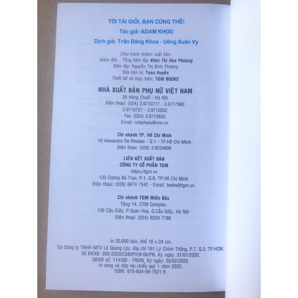 Trên đây là toàn bộ thông tin về quyển sách TÔI TÀI GIỎI, BẠN CŨNG THẾ mà bạn đang quan tâm , hi vọng phần nào thỏa mãn nhu cầu của quý đọc giả.