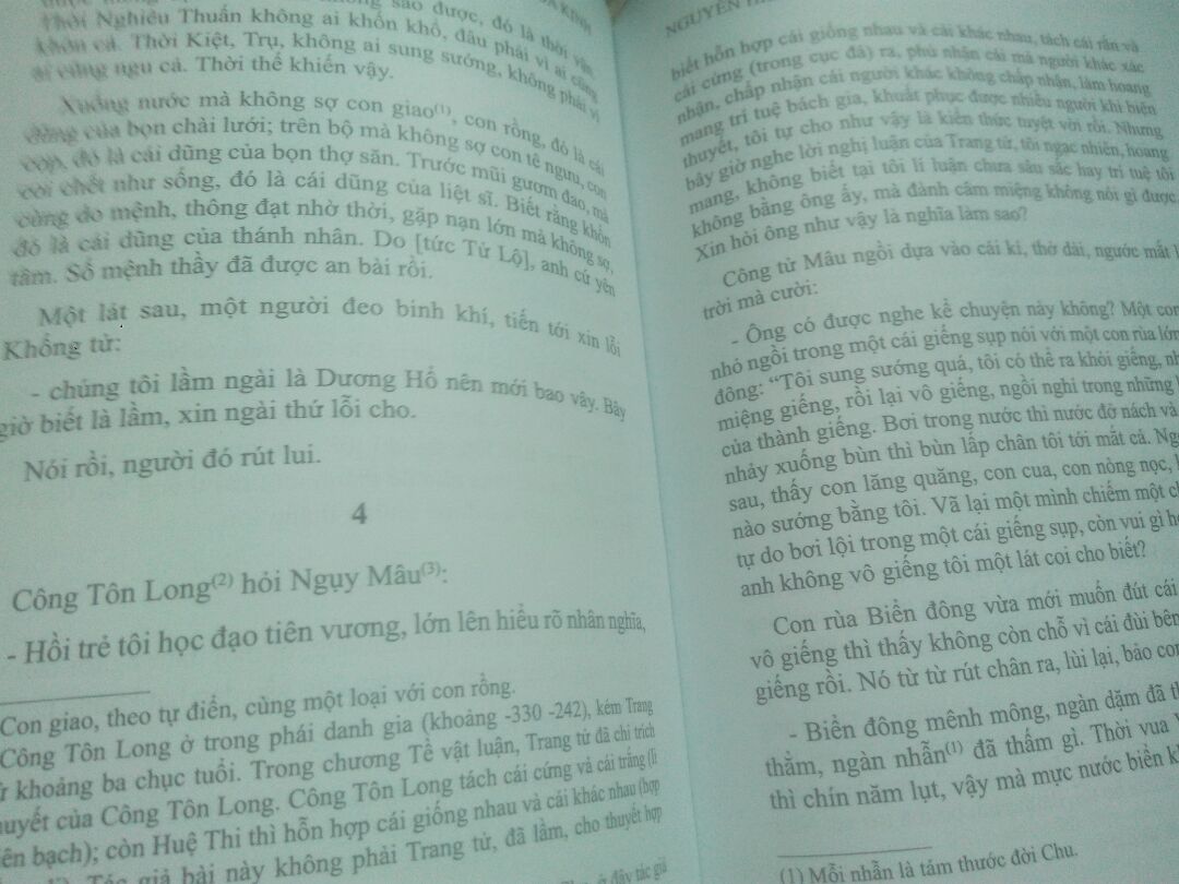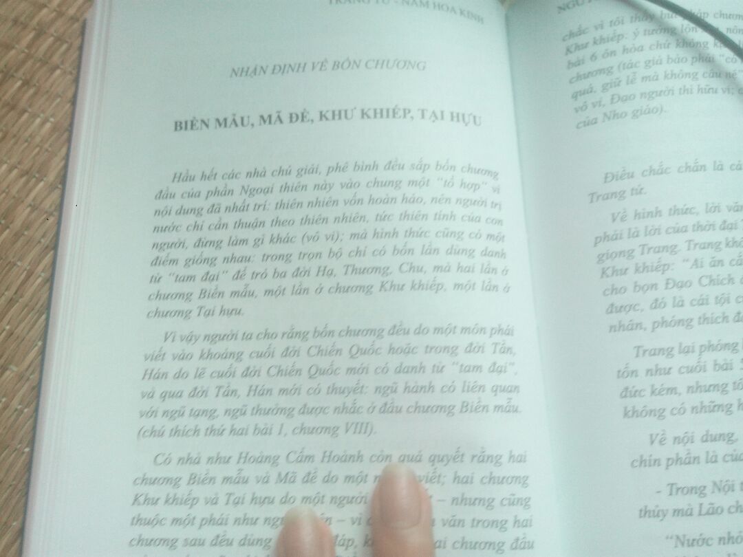 Trang Tử – Nam Hoa Kinh Lần đầu tiên Nam Hoa Kinh được dịch trọn bộ ra tiếng Việt và được phân tích kĩ từng chương một để giữ cho Trang tử những cái gì của Trang mà trả lại cho người trước và người sau những cái gì của người truớc và người sau; có vậy mới đánh giá được sự cống hiến của Trang cho tư tưởng Trung Hoa. Những đoạn nào tối nghĩa thì được dịch giả thận trọng ghi cả hai ba cách giải của người trước và tùy chỗ, đưa ý kiến riêng của mình.