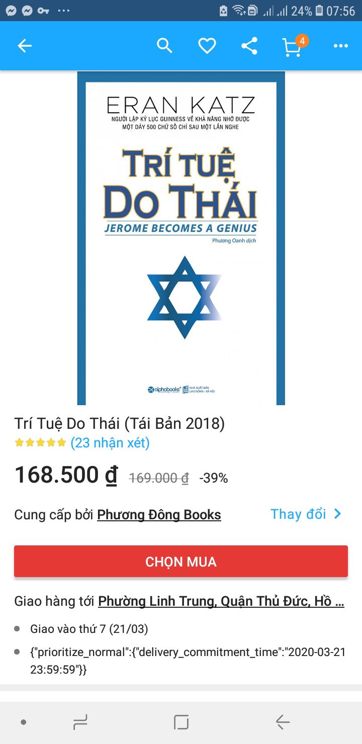 Sách Trí Tuệ Do Thái (Tái Bản 2018) review: Đứng thứ 67 trong Top 1000 Sách tư duy – Kỹ năng sống bán chạy tháng này, với hơn 113 nhận xét, đánh giá từ độc giả, giá ebook: 101.400 ₫.