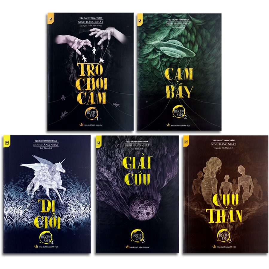 Trò Chơi Cấm (Trọn bộ 5 quyển) Khi mua chọn bộ 5 quyển Trò Chơi Cấm shop sẽ tặng Móc khóa, Sổ tay 12 cung hoàng đạo ngẫu nhiên các bạn nhé Trò Chơi Cấm (Tập 1) Đây là trò chơi săn đuổi kịch tính và chứa nhiều điều huyền bí nhất trong lịch sử. Năm mươi học viên trong một lớp đào tại tiếng Anh cho người lớn, mỗi người đều được ban cho một khả năng khống chế một sự vật nhất định. Lúc bắt đầu, khả năng đó đều ở cấp độ thấp nhất, nhưng mỗi lần sử dụng nó để “đánh gục” một đối thủ, sức mạnh sẽ tăng lên một cấp. Trong vòng một năm, chỉ một trong số năm mươi người đó có thể sống sót, sức mạnh của kẻ chiến thắng sẽ tăng gấp 50 lần so với ban đầu, trở thành “thần của thế kỉ mới”, có khả năng khống chế cả thế giới. Tất cả những thứ đó, đều là “trò chơi” do một người tự xưng là “người chiến thắng” của kì chơi trước, với tên gọi “cựu thần” sắp đặt. Kể từ khi ông ta xuất hiện, năm mươi con người bình thường kia, sẽ không còn bình thường nữa. Cuộc đời và vận mệnh của họ đã thay đổi hoàn toàn kể từ đó. Trò Chơi Cấm (Tập 2) Trò chơi cấm Tập 2 với tựa đề Cạm bẫy nối tiếp phần 1, sau khi “”Cưu thần”” giáng lâm và ban cho mỗi học viên trong lớp 13 theo những siêu năng lực theo ước muốn và suy nghĩ của họ. Sau khoảng thời gian tìm tòi, khám phá, làm quen với siêu năng lực mới này, 50 con người thực sự bước vào cuộc chiến sinh tử với những hiểm họa khó lường. Điều gì đang chờ họ ở phía trước. “”Thù ngoài”” không đáng sợ khi lòng người đổi thay, tình người bị lòng tham, sự đố kị lấn át. Nhiều người bỗng nhiên bị mất tích mà không rõ nguyên nhân. Một khu rừng đột nhiên bị cháy với những dãy số bí ẩn. Tín hiệu ở bên ngoài trái đất là gì? Những sinh vật thần bí, ngoại lại đó đến từ đâu. Còn “”Cựu thần”” – hắn rốt cuộc là ai? Liệu Liên Minh Bảo vệ vừa mới được thành lập có thể ngăn chặn được những âm mưu tàn sát lẫn nhau và tìm ra chân tướng. Trò Chơi Cấm (Tập 3) Một căn phòng âm u… Một giá sách cũ kĩ… Một cuốn sách cổ sờn mép dường như mang ngụ ý… “Cựu thần” hắn là ai? tại sao lại phải ép 50 người trong lớp học Tiếng Anh tham gia vào “trò chơi sinh tồn” do hắn tạo nên. Điều gì đang chờ những “Người sống sót” ở phía trước: Căn bệnh kinh hoàng reo rắc nỗi sợ hãi cho toàn thế giới, những thế lực kì bí, những sinh vật cổ từ hàng trăm năm trước? Liên minh Những người bảo vệ phải làm gì để vừa ngăn chặn cuộc nội đấu bên trong lại vừa có thể thoát khỏi vòng vây nguy hiểm do tác nhân bên ngoài? Liệu họ có thể tìm ra được chân tướng về Cựu thần. Trò Chơi Cấm (Tập 4) Sau khi khám phá ra quá khứ của Cựu thần, Liên minh những người bảo vệ ngày càng trở nên mạnh mẽ hơn, có thể nắm trong tay sức mạnh vần xoay cả thế giới. Thế nhưng mọi chuyện không vì thế mà dừng lại. Thân phận Cựu thần thật sự là ai? Vì sao cứ như một “bóng ma” không tan không ngừng bám theo họ? Trước những âm mưu của kẻ thù, có những người đã ra đi vĩnh viễn, trách nhiệm đặt lên vai những người “ở lại” ngày càng nặng nề. Phải làm gì để bảo vệ chính bản thân mình? Bảo vệ thế giới trước sự xuất hiện của “thế lực thứ ba”. Tại “Không gian khác” – Dị giới, Liên minh những người bảo vệ còn phải đối mặt với đối thủ đáng sợ nào? Thời hạn chỉ còn lại 4 tháng. Kết cục nào đang chờ đợi họ ở phía trước? Trò Chơi Cấm (Tập 5) Ngày tận thế cũng đang sắp đến gần, những người sở hữu năng lực đặc biệt và loài người sẽ phải làm gì để tránh tai họa này? Họ phải làm gì khi thông tin của mình liên tục được tiết lộ và lần lượt ngã xuống bởi trò chơi tàn khốc này? Ai sẽ trở thành “tân thần” của thế giới? Cựu thần hắn đang trà trộn nơi đâu? Giải cứu không chỉ là cuộc chiến đấu tìm ra chân tướng sự thật, cuộc chiến giữa chính nghĩa và tà ác mà còn là cuộc chiến của mỗi người. Liệu họ có vượt qua được lòng tham, sự ích kỉ Xét đến cùng đây vẫn chỉ là một TRÒ CHƠI DÀI. —***—- Công ty phát hành Phúc Minh Book Nhà xuất bản Nhà Xuất Bản Văn Học Loại bìa Bìa mềm Tác giả Ninh Hàng Nhất Ngày xuất bản 04-2018 Kích thước 14.5 x 20.5 cm Số trang 461 + 529 + 510 + 510 + 507