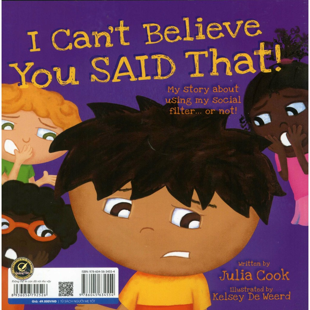 #mevabe #sách #moonbooks #books #Shopeemall Moonbooks là ShopeeMall – Cam kết bán sách chuẩn nhà xuất bản. Moonbooks giới thiệu tới bạn đọc bộ sách: Trọn Bộ 7 Cuốn Sách Song Ngữ Xây Dựng Các Mối Quan Hệ 1. Con Xin Lỗi, Con Đã Quên Xin Phép! – Sorry, I forgot to ask! Tác giả: Julia Cook Người dịch: Đào Thanh Hải Nhà xuất bản: Nxb văn học Nhà phát hành: Quảng Văn Mã Sản phẩm: 8936056791680 Khối lượng: 220.00 gam Ngôn ngữ: Tiếng Anh, Tiếng Việt Định dạng: Bìa mềm Kích thước: 20.5 x 20.5 cm Ngày phát hành: 22/09/2016 Số trang: 64 2. Kết Bạn Là Một Nghệ Thuật – Making Friends Is an Art Tác giả: Julia Cook Người dịch: Nguyễn Trà Nhà xuất bản: Nxb văn học Nhà phát hành: Quảng Văn Mã Sản phẩm: 8936056791680 Khối lượng: 220.00 gam Ngôn ngữ: Tiếng Anh, Tiếng Việt Định dạng: Bìa mềm Kích thước: 20.5 x 20.5 cm Ngày phát hành: 22/09/2016 Số trang: 64 3. Ngày Tồi Tệ Nhất đời! – The Worst day of my life ever! Tác giả: Julia Cook Người dịch: Hoàng Mùi Nhà xuất bản: NXB Phụ Nữ Nhà phát hành: Quảng Văn Mã Sản phẩm: 8936056792496 Khối lượng: 220.00 gam Ngôn ngữ: Tiếng Anh, Tiếng Việt Định dạng: Bìa mềm Kích thước: 20.5 x 20.5 cm Ngày phát hành: 22/09/2016 Số trang: 64 4. Decibella Học Cách Nói Vừa Nghe – Decibella and her 6-inch voice Tác giả: Julia Cook Người dịch: Ngân Huyền Nhà xuất bản: NXB Phụ Nữ Nhà phát hành: Quảng Văn Mã Sản phẩm: 8936056792519 Khối lượng: 220.00 gam Ngôn ngữ: Tiếng Việt, Tiếng Anh Định dạng: Bìa mềm Kích thước: 20.5 x 20.5 cm Ngày phát hành: 16/01/2017 Số trang: 64 5. Hôi Quá… Mất Vệ Sinh Quá – Hygiene you stink! Tác giả: Julia Cook Người dịch: Nguyễn Thùy Nhà xuất bản: NXB Phụ Nữ Nhà phát hành: Quảng Văn Mã Sản phẩm: 8936056792533 Khối lượng: 220.00 gam Ngôn ngữ: Tiếng Việt, Tiếng Anh Định dạng: Bìa mềm Kích thước: 20.5 x 20.5 cm Ngày phát hành: 16/01/2017 Số trang: 64 6. Không Thể Tin Là Con Đã Nói Như Vậy – I can’t believe you sad that! Tác giả: Julia Cook Người dịch: Đào Thanh Hải Nhà xuất bản: NXB Phụ Nữ Nhà phát hành: Quảng Văn Mã Sản phẩm: 8936056792526 Khối lượng: 220.00 gam Ngôn ngữ: Tiếng Việt, Tiếng Anh Định dạng: Bìa mềm Kích thước: 20.5 x 20.5 cm Ngày phát hành: 16/01/2017 Số trang: 64 7. Con Không Thích Bị Nói Không – I just don’t like the sound of no! Tác giả: Julia Cook Người dịch: Đào Thanh Hải Nhà xuất bản: NXB Phụ Nữ Nhà phát hành: Quảng Văn Mã Sản phẩm: 8936056792502 Khối lượng: 220.00 gam Ngôn ngữ: Tiếng Việt, Tiếng Anh Định dạng: Bìa mềm Kích thước: 20.5 x 20.5 cm Ngày phát hành: 16/01/2017 Số trang: 64 Giá bìa: 49k/cuốn
