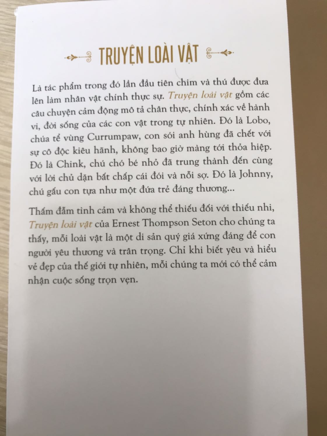 Sách Truyện Loài Vật, Tác giả: Ernest Thompson Seton, Công ty phát hành Công Ty Cổ Phần Văn Hóa Đông A Ngày xuất bản 02-2020 Kích thước 13.5 x 20.5 cm Loại bìa Bìa mềm Số trang 576 SKU 6072128002802 Nhà xuất bản Nhà Xuất Bản Văn Học.