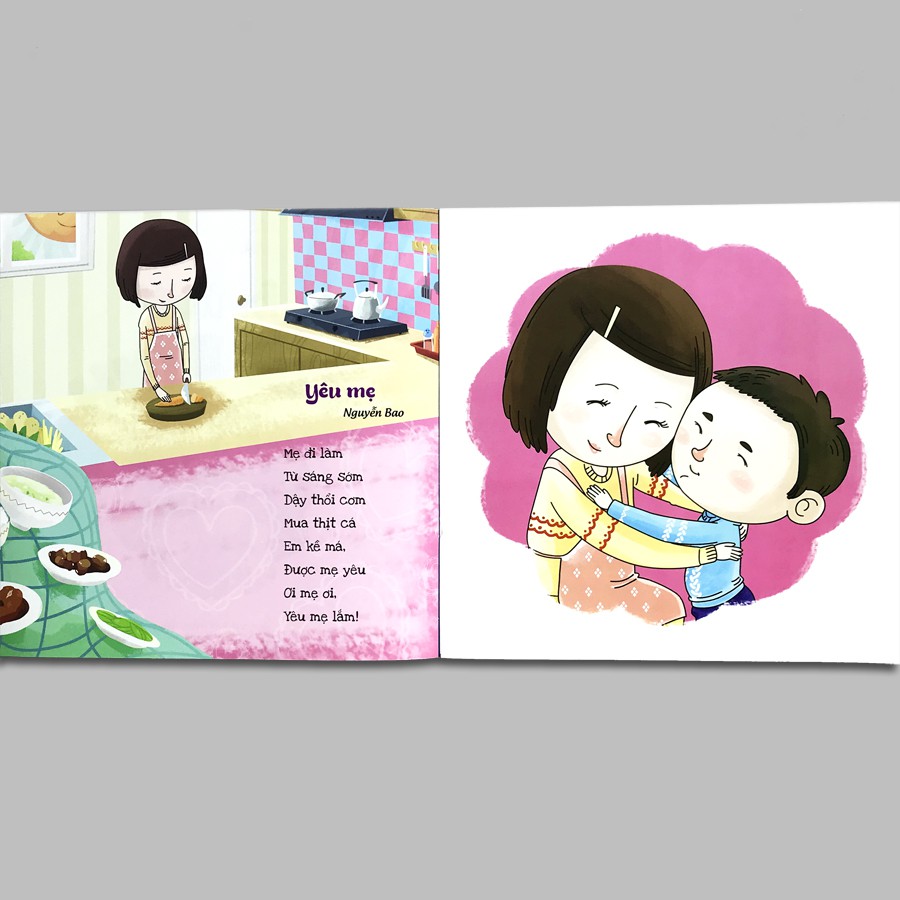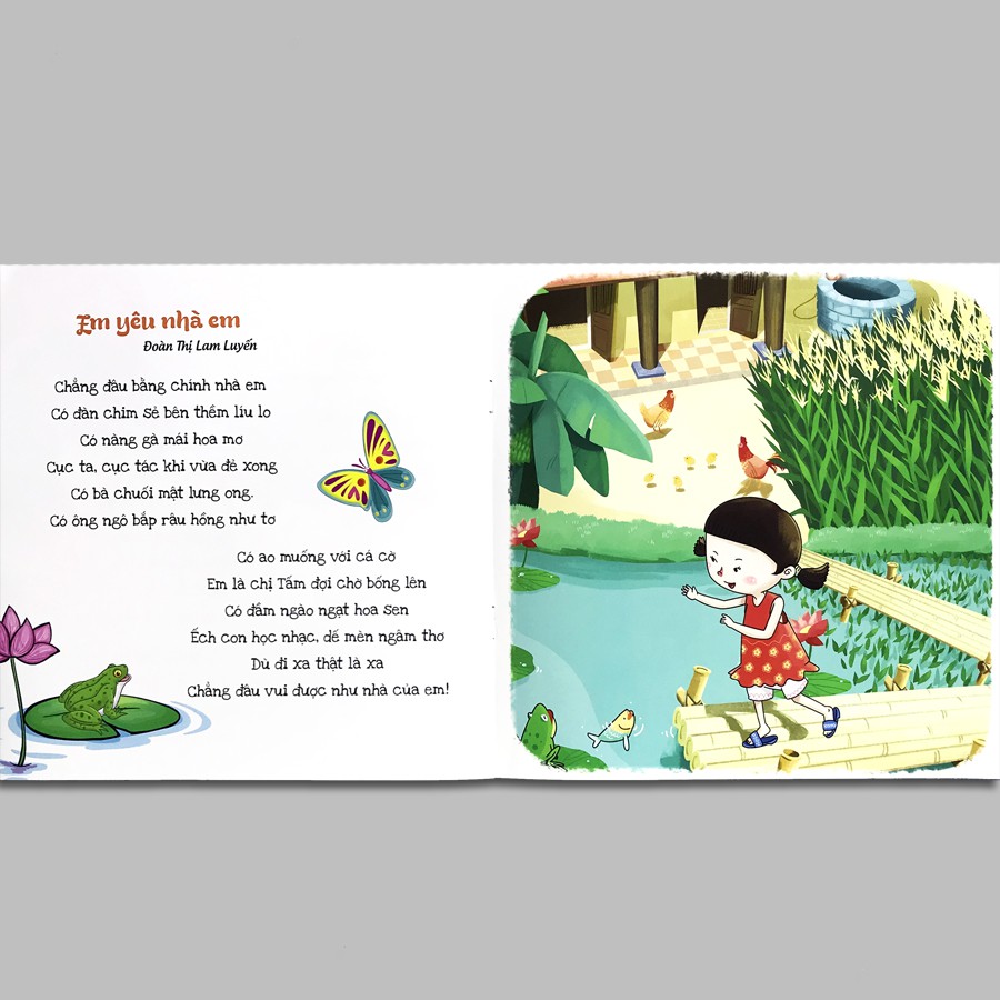 Tủ Sách: Bài Thơ – Bài Hát – Câu Đố Dành Cho Bé – Chủ Đề: Gia Đình (Tái bản B18) Cuốn sách Tủ Sách: Bài thơ – Bài hát – Câu đố dành cho bé – Chủ Đề Gia đình nằm trong bộ sách Tủ Sách: Bài Thơ – Bài Hát – Câu Đố Dành Cho Bé. Sách sưu tầm những bài thơ hay, dễ nhớ về các chủ đề quen thuộc như gia đình, cô giáo – bạn bè, loài vật, bài hát… Đặc biệt sách còn có hình minh họa rất sinh động, đầy màu sắc. Ơi chích chòe ơi Chim đừng hót nữa Bà em ốm rồi Lặng cho bà ngủ Bàn tay bé nhỏ Vẫy quạt thật đều Ngấn nắng thiu thiu Đậu trên tường trắng Căn nhà đã vắng Cốc chén nằm im Đôi mắt lim dim Ngủ ngon bà nhé Hoa cam hoa khế Chín lặng trong vườn Bà mơ tay cháu Quạt đầy hương thơm ——- Công ty phát hành: Phúc Minh Tác giả: Trà My Ngày xuất bản: 03-2020 Kích thước: 20.5 x 20.5 cm Nhà xuất bản: Nhà Xuất Bản Thanh Niên Loại bìa: Bìa mềm Số trang: 16 trang ——- #ehon, #flashcard, #sách-truyệnthiếunhi, #btscomic, #thẻhọcthôngminhchobé, #thẻhọcthôngminh, , #ăndặm, #bộthẻhọcthôngminh, #truyệncổtích, #ăndặmkiểunhật, #ăndặmkhôngphảilàcuộcchiến, #đểconđượcốm, , #sáchlậtmở, #sáchăndặm, #truyệntranh, #10vạncâuhỏivìsao, #báchkhoatoànthưchobé, #sáchchiếubóng, #flashcardstiếnganh, #glenndoman, #sáchnuôiconkhôngphảicuộcchiến, #flashcard, #thẻhọc, #combo, #sáchhay, #nhàsáchonline
