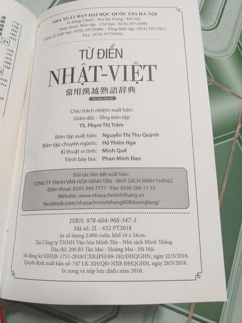 Ngày nay, tiếng Nhật là ngôn ngữ giao tiếp thông dụng. Ở nước ta, nhu cầu giao tiếp bằng tiếng Nhật ngày càng tăng vọt. Để học tiếng Nhật tốt, bên cạnh những sách ngữ pháp Tiếng Nhật còn cần có từ điển Nhật – Việt. Từ Điển Nhật – Việt giúp việc tự học tiếng Anh dễ dàng và hiệu quả. Từ Điển Nhật – Việt là cuốn sách thu thập và giải thích những chữ Hán thông dụng trong tiếng Nhật gồm: 1945 Joyo Kanji, 18.000 tổ hợp, 2.000 thuật ngữ. Đồng thời cuốn sách này sẽ chỉ dẫn cho các bạn cách viết chữ Hán, cũng như chỉ cho các bạn cách đọc ON/KUN phiên âm La Tinh và cách đọc Hán Việt của Tiếng Việt.