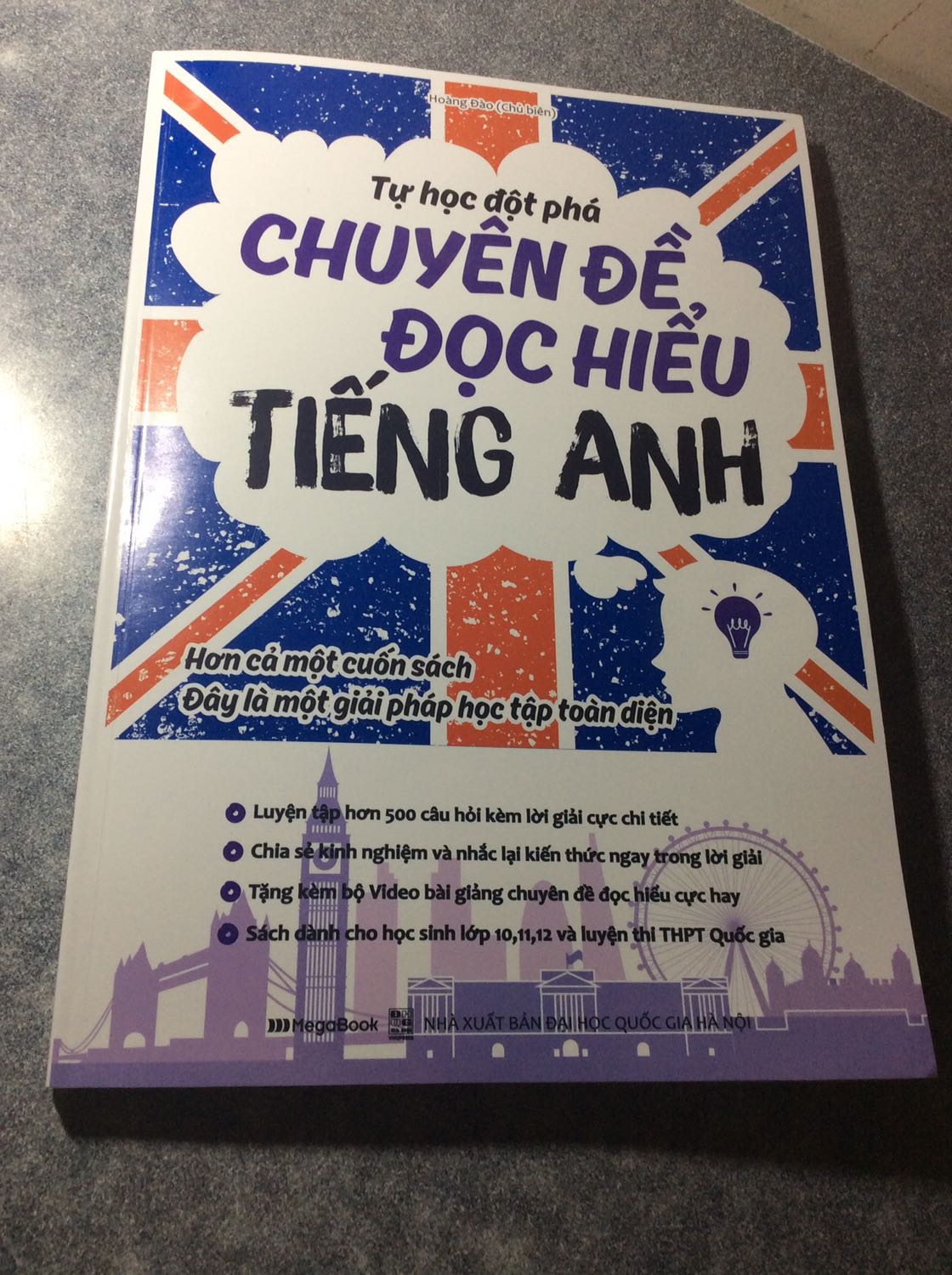 Tự Học Đột Phá Tiếng Anh – Chuyên đề đọc hiểu Tiếng Anh (Kèm Video Luyện Thi THPT Quốc Gia) nằm trong bộ sách Tự học đột phá Tiếng Anh. Sách dành cho học sinh thi THPT, sinh viên đại học và người đi làm muốn nâng cao trình độ Tiếng Anh. Cuốn sách là giải pháp hoàn hảo cho những ai đang tìm kiếm sách Tiếng Anh tự học chất lượng. Tự Học Đột Phá Tiếng Anh – Chuyên Đề Đọc Hiểu (Kèm Video Luyện Thi THPT Quốc Gia) rèn học sinh kĩ năng đọc những bài viết dài trên 1000 từ, kinh nghiệm để “đọc lướt” cũng có thể rút ra ý chính từng đoạn; chỉ biết 60% từ vựng trong đoạn những vẫn hiểu ý chính; cách trả lời những câu trắc nghiệm “mẹo”; rèn thêm từ mới qua các đoạn văn phức tạp… Tự Học Đột Phá Tiếng Anh – Chuyên Đề Đọc Hiểu (Kèm Video Luyện Thi THPT Quốc Gia) Bộ sách video chuyên đề Tiếng Anh đầu tiên dành cho THPT lớp 10,11,12 sử dụng cấu trúc theo phương pháp tự học quốc tế (học bằng sách kết hợp video bài giảng). Bộ sách video Tự Học Đột Phá Tiếng Anh gồm 3 quyển tương ứng với 3 chuyên đề: Ngữ Pháp, Đọc Hiểu, Trọng Âm – Phát Âm. Mỗi chuyên đề đều được giải thích sâu lý thuyết kết hợp bài tập tự luyện đa dạng giải chi tiết. NỘI DUNG NỔI BẬT của cuốn sách Cam kết học tập tạo động lực và mục tiêu cụ thể Luyện tập hơn 500 câu hỏi kèm lời giải cực chi tiết Chia sẻ kinh nghiệm và nhắc lại kiến thức ngay trong lời giải Tặng kèm bộ video bài giảng chuyên đề đọc hiểu cực hay Sách dành cho học sinh lớp 10, 11, 12 và luyện thi THPT Quốc Gia Hơn cả một cuốn sách, đây là một giải pháp học tập toàn diện! Công ty phát hành Megabook Nhà sản xuất Nhà xuất bản Đại học Quốc Gia Hà Nội Kích thước 20.5×29.5 Tác giả Hoàng Đào Loại bìa Bìa mềm Số trang 196 Ngày xuất bản 10/2018