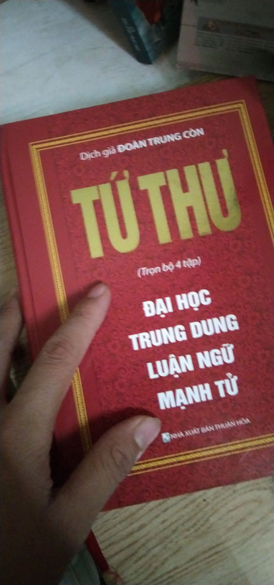 Sách Tứ Thư – Trọn Bộ 4 Tập : Đại Học – Trung Dung – Luận Ngữ – Mạnh Tử, , Công ty phát hành Công ty TNHH TM & DV Văn Hóa Hương Trang Dịch Giả Đoàn Trung Còn Loại bìa Bìa cứng Số trang 922 SKU 9831529459366 Nhà xuất bản Nhà Xuất Bản Thuận Hóa.