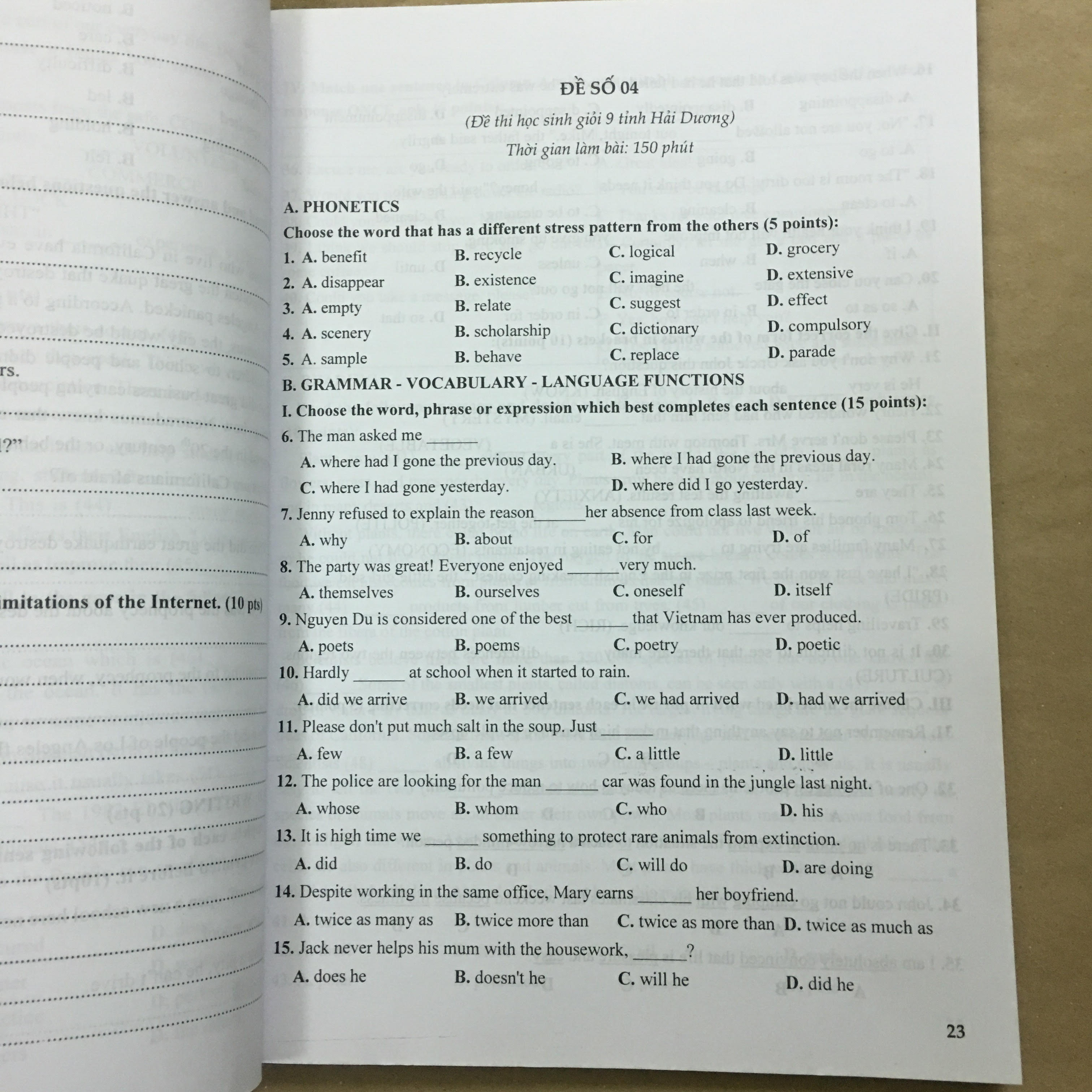Tuyển chọn đề thi học sinh giỏi trung học cơ sở môn tiếng anh , quyển 2 kèm CD ( Cẩm nang ôn luyện học sinh giỏi tiếng anh trung học cơ sở ( tặng kèm bookmark hình )