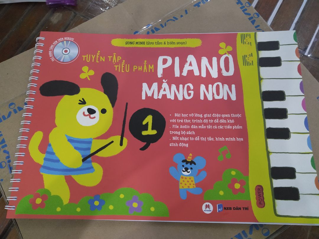 Tuyển Tập Tiểu Phẩm Piano Măng Non Phần 1 Bộ sách (2 phần) gồm những bài tập dành cho những lứa tuổi mầm non, tiểu học nói riêng và những người học mới piano nói chung. Các bài hát trong sách chủ yếu dựa vào các giai điệu, các bài hát thiếu nhi trong và ngoài nước, những tiểu phẩm piano nổi tiếng hoặc soạn từ các bản nhạc giao hưởng – thính phòng kinh điển của thế giới. Trong tuyển tập này, các tiểu phẩm được biên soạn và sắp xếp theo trình độ từ dễ đến khó tăng lên từ từ để các bé có thể thẩm thấu tốt nhất những kiến thức đã học. Đặc biệt, CD đàn mẫu tất cả các tiểu phẩm trong sách là phương tiện hỗ trợ học tập hiệu quả. Với thiết kế gáy xoáy, khổ ngang, nốt nhạc to không phải mất thao tác lật trang khi đang chơi nhạc, cuốn sách này rất tiện dụng khi đặt trên giá nhạc để thị tấu.