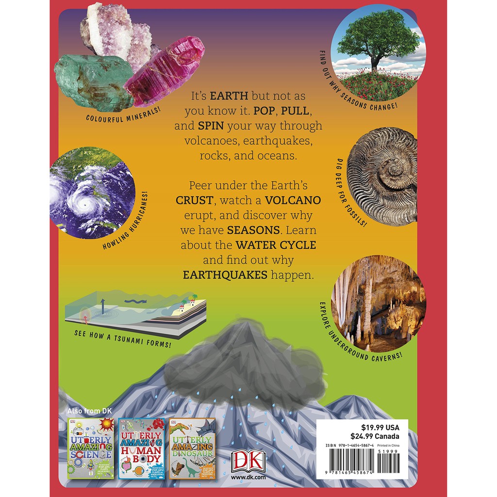 1. Nội dung Sách – Utterly Amazing Earth Từ những trận động đất hay núi lửa phun trào, từ bốn mùa thay đổi trên Trái Đất đến vòng tuần hoàn của nước, tất cả đều được mô phỏng trong cuôns sách độc đáo Utterly Amazing Earth Khi đọc sách, các bé như được khám phám các tầng địa chất của Trái đất, lý giải các hiện tượng tự nhiên cũng như đa dạng về hệ sinh thái Điểm độc đáo của Sách Khoa Học Cho Bé UTTERLY AMAZING EARTH chính là được thiết kế đa tương tác với nhiều hình ảnh nổi 3D, kéo đẩy pull-taps, lật giở và có cả vòng xoay nữa. Sách chắc chắn là bạn đồng hành vô cùng tuyệt vời với các bạn nhỏ đam mê khám phá khoa học 2. Thông tin Sách – Utterly Amazing Earth Độ tuổi: 7 tuổi trở lên Số trang: 32 trang Sách bìa cứng Nhà xuất bản DK Năm xuất bản 2019