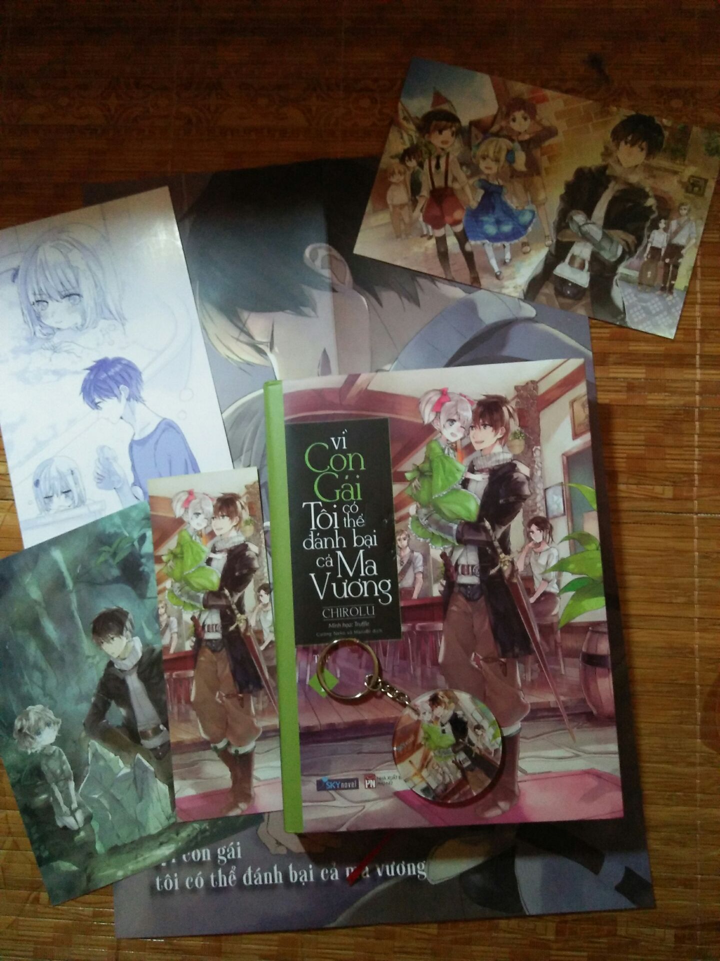 Vì Con Gái Tôi Có Thể Đánh Bại Cả Ma Vương Tại thế giới này, tất cả mọi ‘người’ đều nói rằng cầu vồng được tạo nên từ bảy sắc màu. Bởi vì cầu vồng chính là hiện thân của những đấng tối cao kiểm soát thế giới. Vì tồn tại dưới bảy hiện diện, nên người ta gọi họ là ‘Thất sắc Thần’: Xích Thần Ahmar, Đề Thần Quirmizi, Kim Thần Asfar, Lục Thần Akhdar, Thanh Thần Azraq, Lam Thần Niili và Tử Thần Banafsaj. Cầu vồng xuất hiện trên bầu trời khi những vị thần cùng quan sát mặt đất. Và đâu đó nơi cầu vồng xuất hiện, một sinh linh đã được sinh ra dưới sự chứng kiến vào bảo hộ của các vị thần. Nơi ấy… chính là điểm bắt đầu cho một câu chuyện. Giữa khu rừng nhỏ, ánh nắng xuyên qua tán lá xanh màu ngọc bích, một cô bé lấm lem bùn đất đang giương đôi mắt ngơ ngác nhìn chàng trai bên cạnh. “Tên ta là Dale. Ngươi?” Với vẻ mặt có phần ngạc nhiên, cô bé đáp bằng một từ duy nhất. “Latina.” Cuộc gặp gỡ tưởng chừng đơn giản ấy, lại thay đổi mãi mãi số phận của hai con người. Có ai đó đã từng nói rằng, đôi khi chúng ta sẽ gặp gỡ định mệnh của đời mình trong một hình hài tưởng như chẳng hề ăn khớp. Nhưng… một cô bé 8 tuổi ư?! Dale Reki – một mạo hiểm giả nổi tiếng bởi những thành tựu mà cậu đạt được từ khi còn rất trẻ. Trong một lần thực hiện nhiệm vụ, cậu đã gặp Latina – một cô nhóc thuộc Quỷ Nhân tộc. Tuy nhiên, cô bé lại bị khuyết một bên sừng – đó là dấu hiệu tội phạm của Quỷ Nhân Tộc. Thương cảm cho số phận của cô nhóc, cậu đã quyết định trở thành một người “Bảo Hộ” cho em. Cuộc sống của chàng trai Dale Reki sẽ thay đổi ra sao bởi cuộc gặp định mệnh ấy? Và quá trình trở thành một người “Cha”, một người “Bảo Hộ” cho cô nhóc sẽ diễn ra như thế nào? Bằng giọng văn đáng yêu từng làm tan chảy hàng triệu trái tim Nhật bản, series light novel mới nhất của SkyNovel “Vì con gái tôi có thể đánh bại cả ma vương” của CHIROLU sẽ đưa bạn vào một thế giới diệu kỳ, cùng câu chuyện không-thể-ngọt-ngào-hơn của “hai cha con” nhà Dale và Latina!