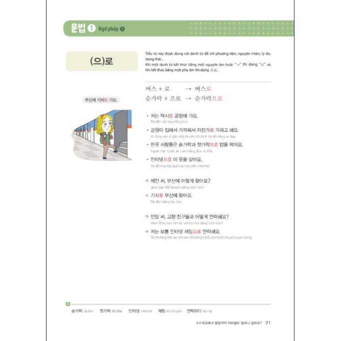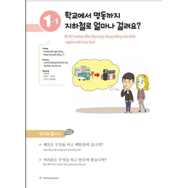 Mô tả sản phẩm: Vitamin tiếng Hàn 2 1. Chủ đề và Tiêu đề của từng bài Ở đầu mỗi chương, sẽ đưa ra chủ đề bài học và tiêu đề của từng chương. Từ đó người học có thể đoán được nội dung bài học. 2. Mục tiêu bài học và Hướng dẫn Thông qua cách trình bày của phần từ vựng, chức năng và ngữ pháp, người học có thể nhận ra mục tiêu của bài học cũng như nhiệm vụ của chính mình trong mỗi bài học. Và thông qua tranh ảnh và các câu hỏi ở phần mở đầu, người học có thể đoán được tình huống giao tiếp theo chủ đề cũng như ý nghĩa của các mẫu câu cho sẵn. 3. Từ vựng và Luyện tập từ vựng Chủ đề của phần từ vựng được phân loại theo chủ đề và được trình bày bằng tranh ảnh để người học có thể dễ dàng biết được ý nghĩa, đồng thời với bài tập đi kèm cũng giúp người học củng cố lại từ vựng về chủ đề đó. 4. Ngữ pháp và Luyện tập ngữ pháp Mỗi bài sẽ giới thiệu 3 cấu trúc ngữ pháp đi kèm với các mẫu câu, các đoạn hội thoại mẫu, nhờ đó mà người học có thể hiểu được sự biến đổi hình thái cũng như ý nghĩa của từng mục đích ngữ pháp khác nhau. Thông qua những bài tập hay, những câu hỏi thông dụng, mẫu câu, đoạn hội thoại dựa trên từng mục đích ngữ pháp khác nhau sẽ giúp người học nâng cao khả năng sử dụng ngôn ngữ một cách chính xác về mặt ngữ pháp. 5. Hội thoại Người học sẽ được học kỹ năng giao tiếp tiếng Hàn thông qua những đoạn hội thoại mẫu được xây dựng theo từ vựng và cấu trúc ngữ pháp theo chủ đề của mỗi chương. 6. Hoạt động chức năng của ngôn ngữ được giới thiệu lồng ghép trong mục Hoạt động để người học có thể thực hành áp dụng các cấu trúc ngữ pháp đã học. Phần Hoạt động được đa dạng hóa về hình thức như “Nghe/Viết” và “Đọc/Nói”, bám sát nội dung của từng bài. 7. Ôn tập tổng hợp Phần ôn tập giúp người học có thể tự đánh giá quá trình học của mình sau mỗi 3 bài. Đầu tiền, người học có thể kiểm tra khả năng từ vựng, cấu trúc ngữ pháp và trên cơ sở đó, có thể kiểm tra nội dung học tập thông qua các câu hỏi về kỹ năng ngôn ngữ cũng như các câu hỏi theo dạng đề TOPIK. 8. Văn hóa Các khía cạnh văn hóa liên quan đến chủ đề của mỗi chương đều được giới thiệu một cách đơn giản bằng tranh ảnh. Thông qua đó, người học có thể so sánh văn hóa Hàn Quốc với chính văn hóa của đất nước mình. Với mục đích giúp người đọc có thể dễ dàng nắm bắt những kỹ năng cần thiết trong giao tiếp tiếng Hàn, cuốn sách Vitamin tiếng Hàn sẽ là loại vitamin bổ ích cung cấp nguồn kiến thức tiếng Hàn trình độ sơ cấp cho bạn Thông tin sản phẩm: Tác giả: Nhiều Tác Giả Năm xuất bản: 2018 Nhà xuất bản: NXB Hồng Đức Kích thước: 19×27 cm Số trang: 284 Mã sản phẩm:0817 Chịu trách nhiệm: Thầy Giáo Thảo