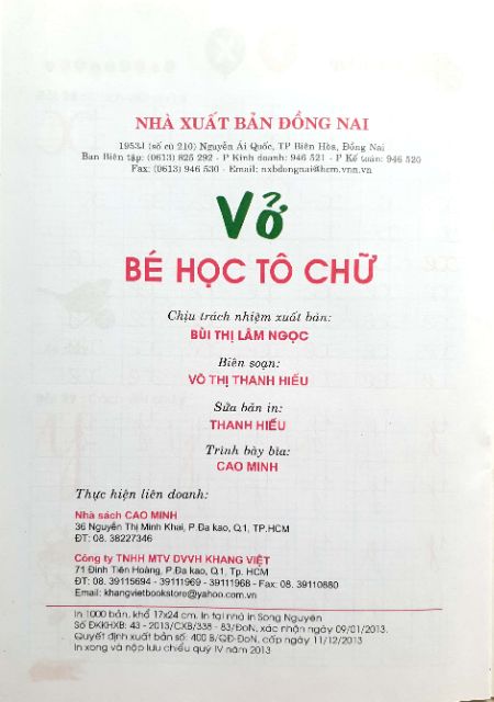 Trên đây là toàn bộ thông tin về cuốn sách VỞ BÉ HỌC TÔ CHỮ mà bạn đang quan tâm, hi vọng phần nào thỏa mãn nhu cầu của quý đọc giả.