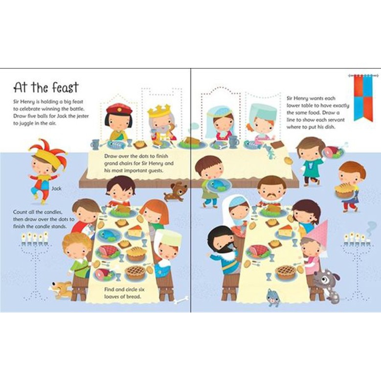 Công ty phát hành: Usborne Nhà xuất bản: Usborne Ngày xuất bản: 09/2015 Tác giả: Nhiều tác giả Kích thước: 21.6 x 27.7 cm Số trang: 24 GIỚI THIỆU CHUNG Wipe-Clean: Castle Activities là một cuốn sách đầy màu sắc với gồm đầy đủ các hình ảnh về lâu đài, mê cung, câu đố để trẻ nhỏ biết cách cầm bút và dần học cách viết chữ. Mỗi trang sách đều được minh họa bằng các hình ảnh như lâu đài cổ kính thời trung cổ, nơi chế tạo áo giáp của các kị binh đến các đấu trường hoàng gia. Các bạn nhỏ có thể đi theo các chấm tròn đã được vạch sẵn để vẽ nên đấu sĩ, kị binh, con đường quanh co qua một ngôi làng nhỏ gần đó để đến được tòa lâu đài cùng nhiều hình ảnh khác nữa. Thông qua cuốn sách, các bạn nhỏ có thể học đếm, học quan sát, học cách cầm và điều khiển bút. Wipe-Clean: Castle Activities A colourful activity book full of castle scenes with mazes, dot-to-dots and drawing puzzles to help little children develop the pen control skills that are essential for learning to write. Each scene features a fun medieval castle scene, from the workshop where knights’ armour is made to an exciting royal tournament. Children can follow the dotted outlines to draw spectators at a joust, a knight’s horse, the winding route to the castle through a nearby village and lots more. A fun way for young children to develop counting, observation and pen control skills. #bluehorizon #books #englishbook #booksforkid #sachtienganh #sachnhapkhau #sachthieunhi #booksforchildren