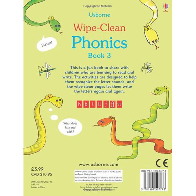 Quyển sách WIPE-CLEAN: PHONICS BOOK 3 ebook epub prc của tác giả: Nhiều tác giả, nhà xuất bản: Usborne, do công ty Usborne phát hành có giá ưu đãi nhất ₫165.600, đã được bán ra với hơn lượt, đi kèm lượt đánh giá, nhận xét về đầu sách. Sau đây là phần review chi tiết ebook: