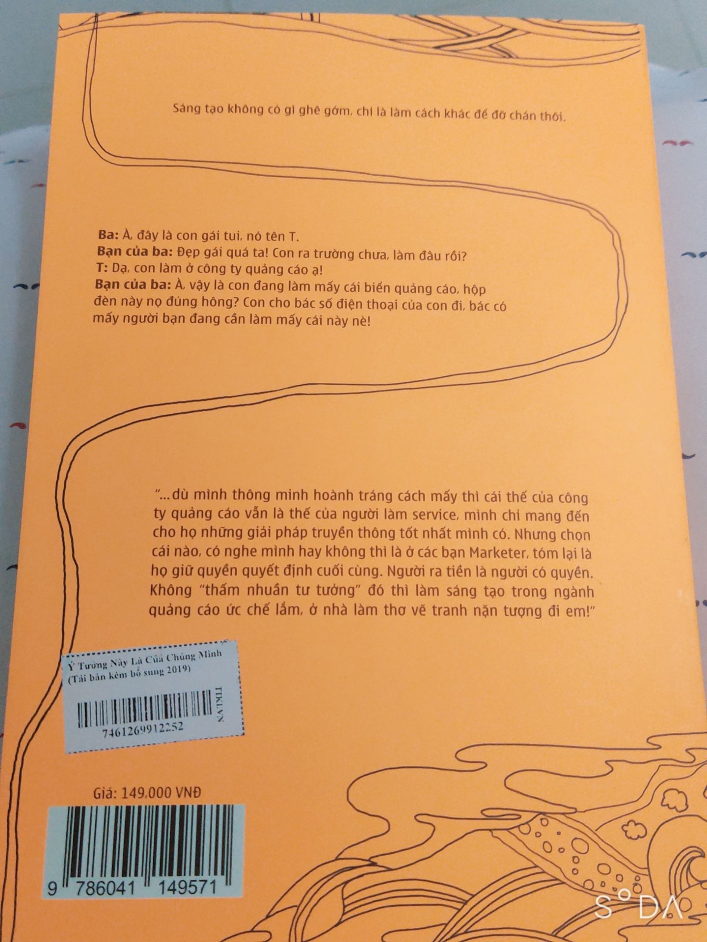 Ý Tưởng Này Là Của Chúng Mình Hành trang nhập môn sáng tạo – phiên bản cập nhật 2019! Quảng cáo giờ đã “mở” và “rộng” hơn nhiều thời quyển sách này mới ra lò (5 năm trước – 2014) nhưng bí kíp để tìm và nghịch cùng niềm vui sáng tạo vẫn chưa bao giờ lỗi thời! Có hai lý do (chính) để đọc quyển sách này: * Biết (rõ) về nghề quảng cáo – nơi tác giả đang bán chữ nuôi thân hàng ngày, về thế giới nhiều buồn lắm vui của copywriter hay “xóm làng” creative nói chung. Không gì bằng niềm vui sáng tạo, vui vầy với ý tưởng mà còn được trả tiền! Đôi khi cũng có chút lăn tăn, vài bi kịch tối tạo khiến ta ngập ngừng chân bước. (Cái này giờ đọc chắc cũng bớt mới rồi, nhưng vẫn thật – vẫn đúng lắm đó mấy bạn). * Chiêm ngưỡng bộ sưu tập chữ đẹp nhặt nhạnh suốt 5 năm vào nghề. Làm sáng tạo vốn chông gai, trong quảng cáo lại chẳng dễ dàng gì – tình yêu với chữ là động lực lớn nhất giúp tôi bước tiếp. Chữ của các đồng nghiệp, chữ của những phó thường dân. Thế giới sẽ đẹp hơn nếu ta yêu chữ, chú tâm hơn khi cầm lên cây viết hay chuẩn bị cất lời. Cái tên thân thương của cộng đồng Sáng tạo – Tối cũng OT tạo – trở lại có gì lạ? – Bìa mới không cứng, cam lè như mùa hè, bao bắt sáng (tạo). – Hưởng ứng tinh thần chống “chữ đè hình”, thêm nhiều minh hoạ để “phiêu” chữ phê hơn. Hình đẹp, hình đẹp, hình đẹp! – Design size khủng, sách gối đầu giường giờ đem kê ngủ luôn cũng được. – 33 trang phụ lục, bổ sung Vitamin B(reak into Advertising) cho những bông hoa sắp rơi cửa agency. CV ra sao, Portfolio thế nào để bán mình hiệu quả? Ai là người “check hàng” mình? Làm sao để “thả ngải” Creative Director? Như tên sách “Ý tưởng này là của chúng mình”, hãy cứ can đảm nghĩ, táo bạo làm, ý tưởng luôn ở quanh ta, thế giới này cần sự tươi mới của bạn đến dường nào! TÁC GIẢ: HUỲNH VĨNH SƠN (SÓI ĂN CHAY) – Copywriter, 10 năm ăn nằm với quảng cáo, chủ xị lớp Sáng Tạo A Bờ Cờ (@sangtaoaboco) – Huy chương vàng “Hội Khoẻ Phù Não 2013” khu vực phía Nam. – Giải nhất “Sáng Tạo Khoẻ” 2012. – Khách mời của chương trình “Như Chưa Hề Có Cuộc Brainstorm” số 70 – Giải chiếu cố cuộc thi “Tưởng Là Có Ý” 2012. – Áo vàng chung cuộc Cúp Agency TP. HCM 2011. – “Ý Tưởng Chạng Vạng Của Năm” do Hiệp Hội Ma Kà Tưng (Marketer) Việt bình chọn (2010). TRÍCH ĐOẠN: Sáng tạo không có gì ghê gớm, chỉ là làm cách khác để đỡ chán thôi. (Trích “Lời khuyên”) —– “Nhiều người nói là mình thích đàn guitar, thật sự họ chỉ thích cái hình ảnh cầm đàn chơi một cách phong trần, khiến các em gái đổ ầm ầm như trên phim ảnh thôi chứ không thật sự thích quá trình rèn luyện gian khổ, tốn thời gian, công sức để chơi guitar thật hay. Quảng cáo cũng rứa, đôi khi ta lao vào ngành chỉ vì yêu thích cái kết quả cuối cùng của nó chạy trên ti vi, trên báo, trên website… còn những cái “nhớp nhúa” khi ta xây lên các tác phẩm ấy là một chuyện khác. Rất khác.” (Trích “Lùa vịt”) —– “…dù mình thông minh hoành tráng cách mấy thì cái thế của công ty quảng cáo vẫn là thế của người làm service, mình chỉ mang đến cho họ những giải pháp truyền thông tốt nhất mình có. Nhưng chọn cái nào, có nghe mình hay không thì là ở các bạn Marketer, tóm lại là họ giữ quyền quyết định cuối cùng. Người ra tiền là người có quyền. Không “thấm nhuần tư tưởng” đó thì làm sáng tạo trong ngành quảng cáo ức chế lắm, ở nhà làm thơ vẽ tranh nặn tượng đi em!” (Trích “Cảm thông”) —— Ba: À, đây là con gái tui, nó tên T. Bạn của ba: Đẹp gái quá ta! Con ra trường chưa, làm đâu rồi? Con gái: Dạ, con làm ở một công ty quảng cáo ạ! Bạn của ba: À, vậy là con đang làm mấy cái biển quảng cáo, hộp đèn này nọ đúng hông? Con cho bác số điện thoại của con đi, bác có mấy người bạn đang cần làm mấy cái này nè! (Trích “Dạ thưa, con làm… quảng cáo!”) Thuộc thể loại Sách kinh tê nhưng được viết theo lối sáng tạo tuyệt vời phù hợp với nhiều nhóm độc giả. Với “Ý tưởng này là của chúng mình” bạn sẽ thấy, sáng tạo quả thật không quá khó, và hàng triệu ý tưởng vẫn đang đâu đó đợi bạn, ở ngay ngoài kia thôi.