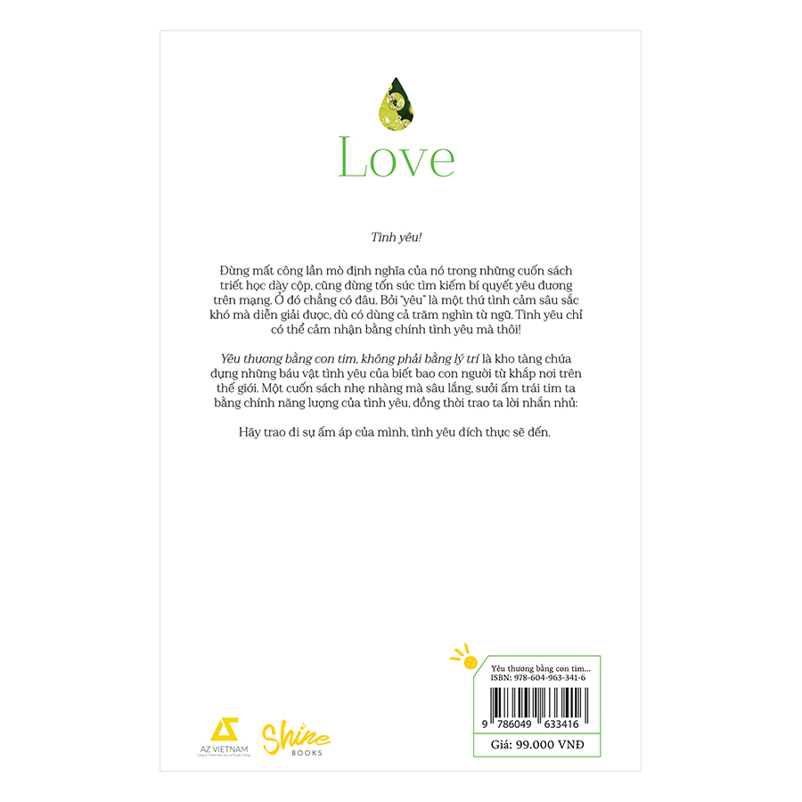 Yêu Thương Bằng Con Tim, Không Phải Bằng Lý Trí “Love is life” “Dù im lặng, hãy im lặng trong tình yêu. Và dù có cất lời, cũng hãy cất lời với tình yêu…” Trong cuộc sống đôi khi điều quan trọng không phải là những thứ bạn nhận được mà là những gì bạn đã cho đi. Quan trọng không phải những thứ bạn mang theo bên mình mà là những gì bạn đã đóng góp. Và quan trọng đâu chỉ là bạn sẽ được mọi người nhớ đến trong bao lâu, mà là họ nhớ gì về bạn. Đừng chỉ nhìn cuộc sống bằng đôi mắt, mà hãy dùng trái tim yêu thương của bạn. Bởi vì chỉ có tình yêu thương mới đem lại những điều kỳ diệu cho cuộc sống. Người ta có thể quên tất cả những gì bạn đã nói, đã làm. Nhưng người ta sẽ không bao giờ quên cảm giác mà bạn đã đem lại cho họ. Hãy đến với “Yêu thương bằng con tim, không phải bằng lý trí”- Cuốn sách giúp bạn xua tan đi những âu lo, muộn phiền, xoa dịu trái tim, sẻ chia và yêu thương nhiều hơn. Hãy trao đi sự ấm áp của mình, tình yêu đích thực sẽ đến!
